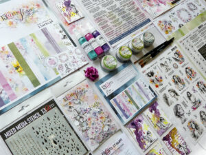 soigneusement sélectionnée de papiers de scrapbooking, pochoirs, tampons, embellissements et