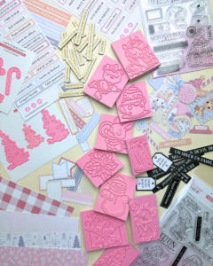 Du célèbre tampon rose aux die-cuts, badges, embellissements en carton
